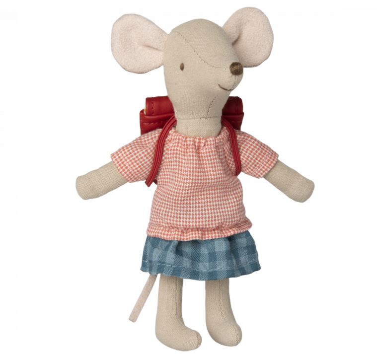 Maileg Cykel Mus Storesøster Mus Med Taske er en fantastisk tilføjelse til dit barns leg.