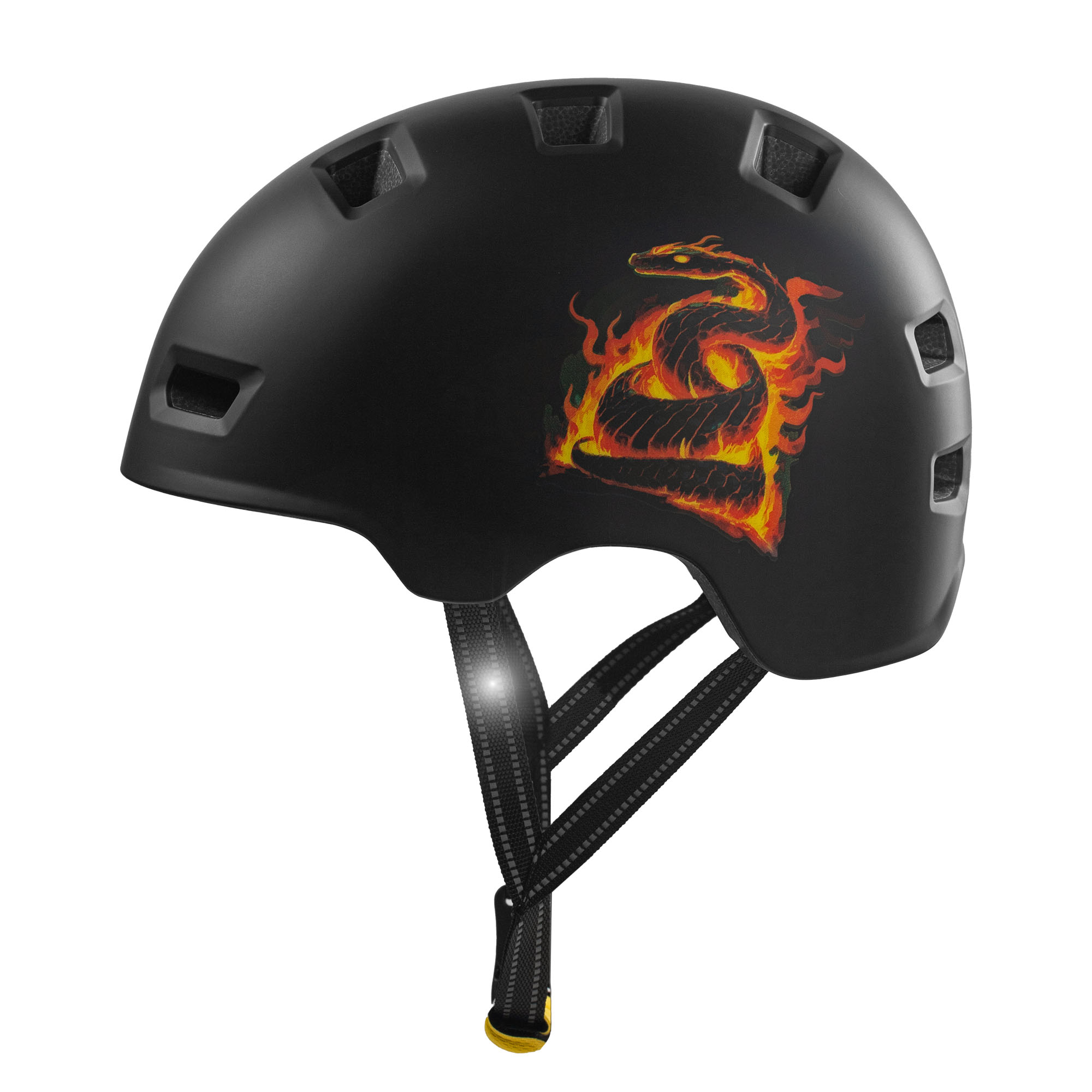 Sort Orange Snake cykel skaterhjelm er det perfekte valg til teenagere og voksne, der ønsker både stil og sikkerhed. Denne hjelm fra Crazy Safety kombinerer et unikt design med funktionalitet